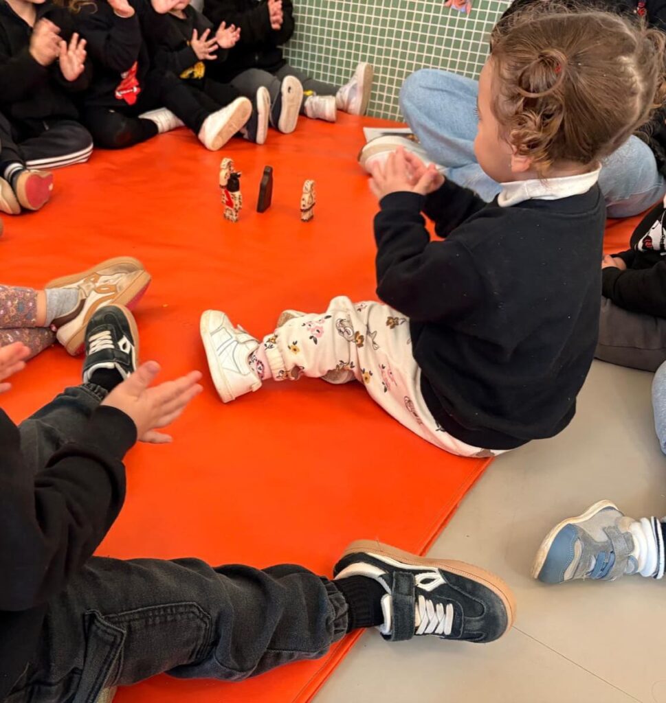 Els moments de trobada esdevenen espais per mirar contes senzills i imatges reals de la festa, fomentant l’atenció, el llenguatge i el vincle afectiu.